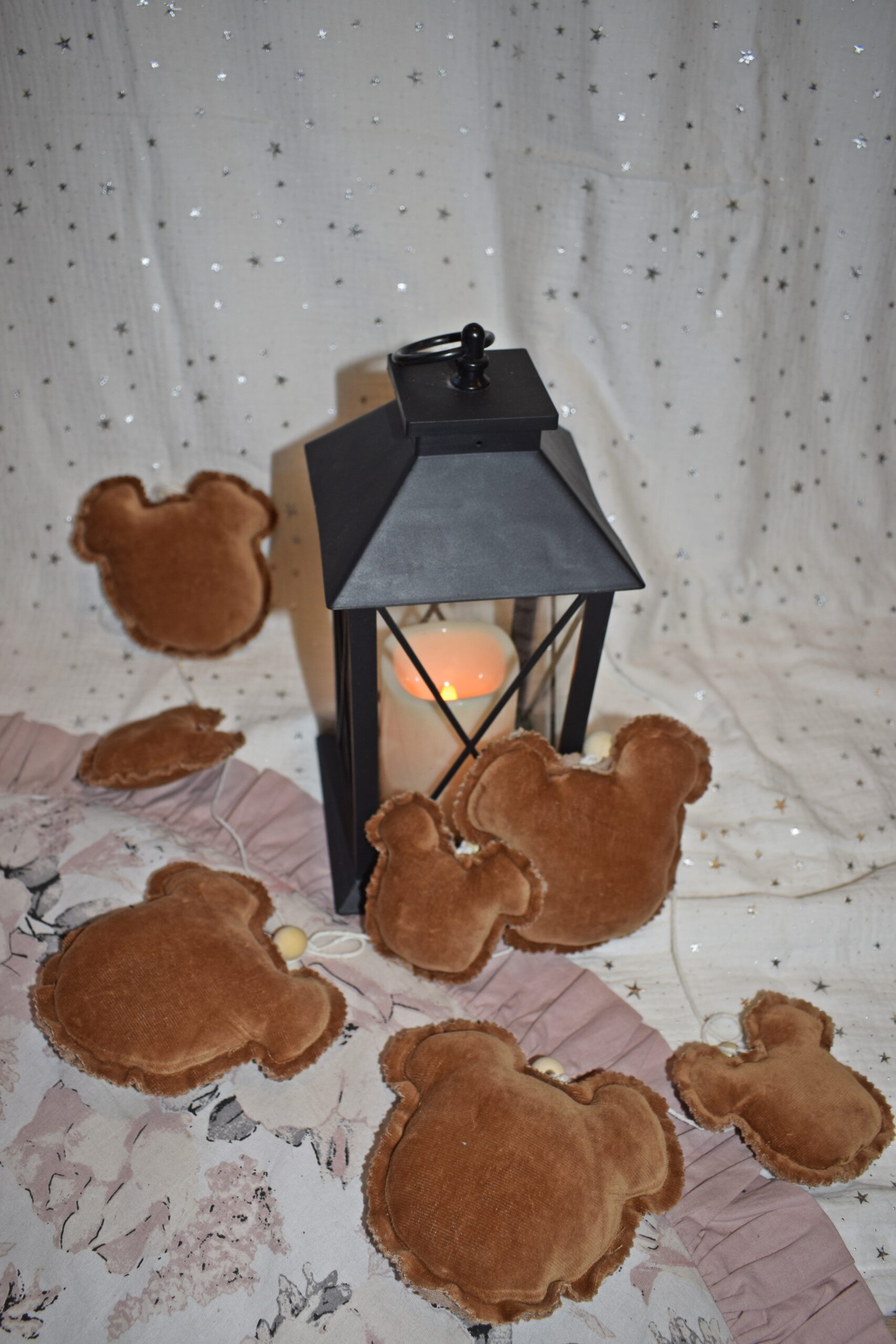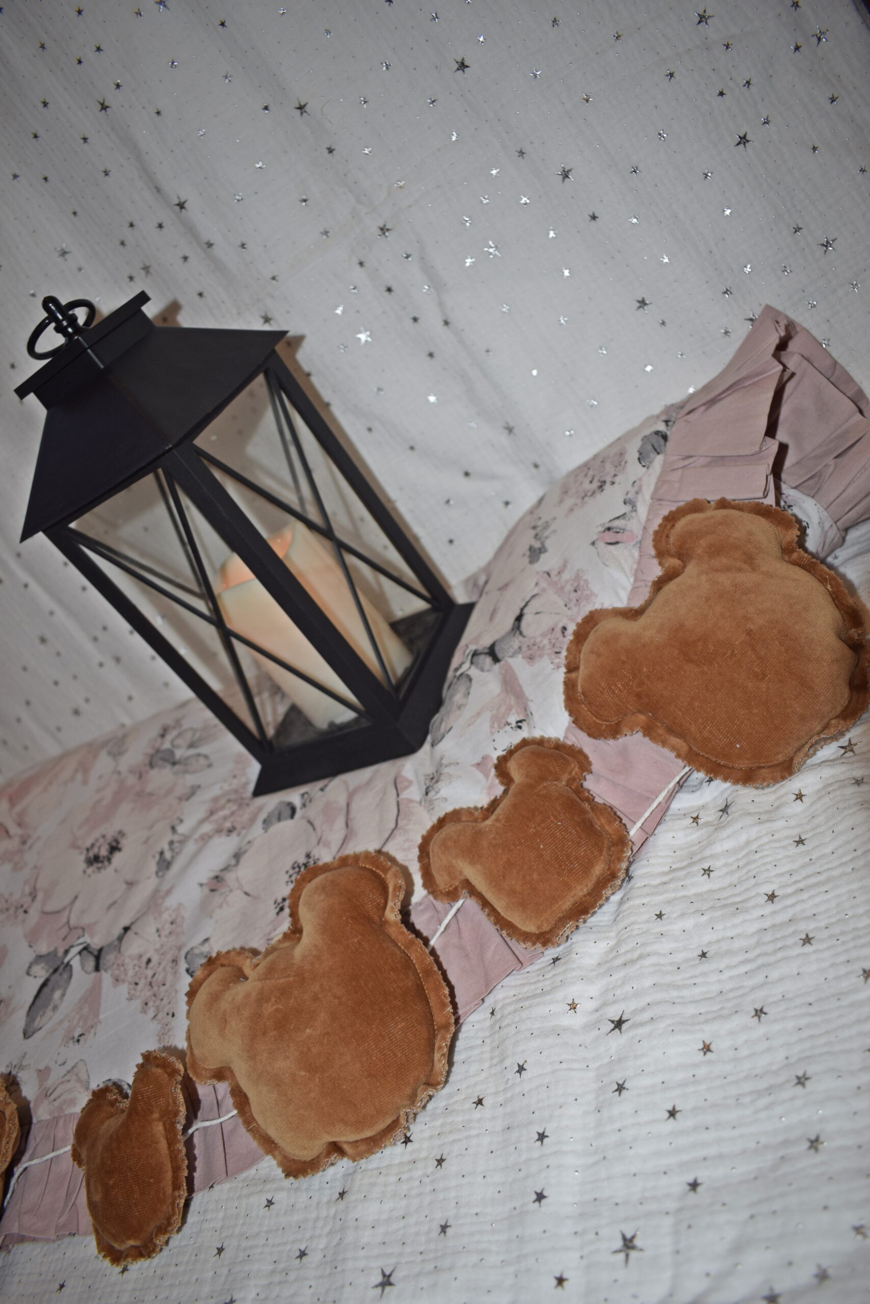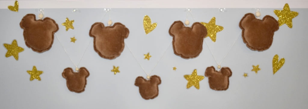 A kto powiedział, ze jak miś to tylko pluszowy? Piękne girlandy które idealnie sprawdzą się jako ozdoba pokoju zarówno tych mniejszych jak i większych dzieci. Dopełnieniem całości będą przepiękne poduszki dostępne w naszej ofercie. Całość wykonana z wysokiej jakości tkaniny Velvet oraz wypełniona antyalergiczną kulką silikonową, całość zawieszona na 100% sznurku bawełnianym. Przy każdym elemencie znajduje się naturalny drewniany koralik stanowiący nie tylko element ozdobny ale przede wszystkim stabilizuje on pojedyncze elementy.