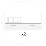 Za dodatkową opłatą w szufladzie może znajdować się stelaż pod kolejny materac – jako dodatkowe miejsce do spania. Dobierając materac na dodatkowe spanie należy uwzględnić, że musi być on krótszy 10 cm np: kupując łóżeczko rozmiar 160×80 w szufladzie z funkcją spania materac musi mieć wymiar 150×70. Materac w funkcji spania nie może przekraczać grubości 12 cm