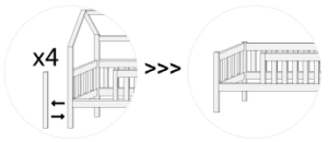 – przy wyborze szerokości łóżka 80 cm – wysokość całkowita domku wynosi – 148 cm