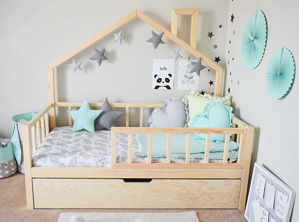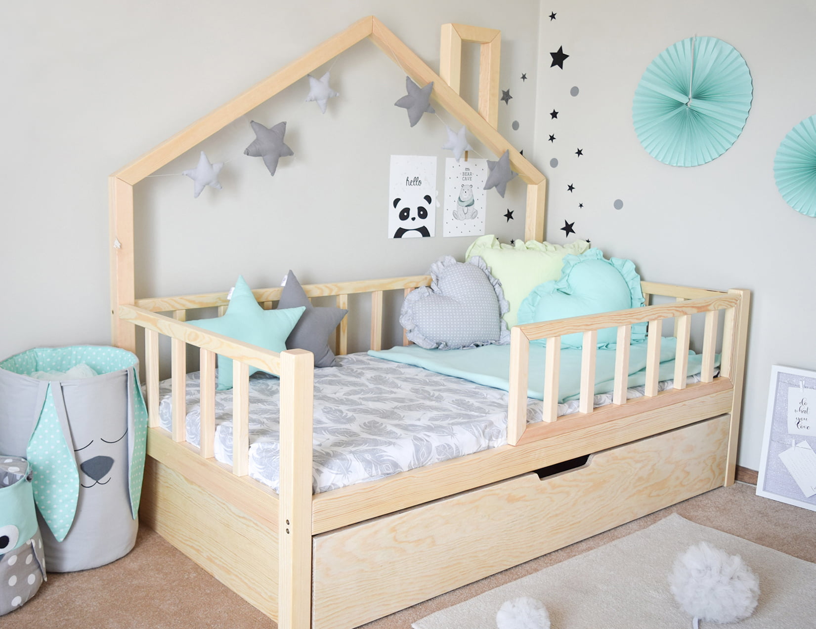 - Łóżeczka dziecięce z szufladą, Łóżko dla dziecka z szufladami, Łóżko dziecięce domek