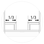 Wejście do łóżeczka może być wykonane po środku – wówczas prawa strona stanowi 1/3 lewa 1/3 i środek – wejście również długość 1/3 – jak na obrazku podglądowym obok opcji do wyboru.